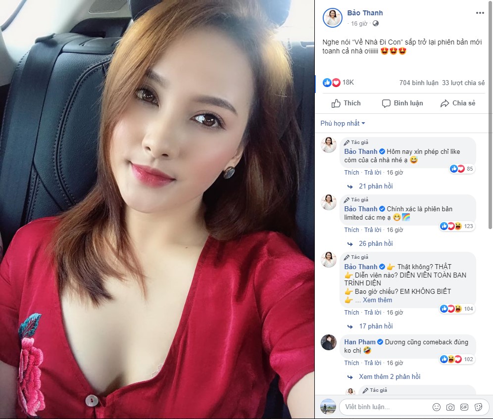 Tuy thời điểm phiên bản “Về nhà đi con” này vẫn chưa được xác định cụ thể nhưng cũng khiến rất nhiều khán giả tỏ ra vô cùng phấn khích. Sự mong ngóng của người hâm mộ được thể hiện rất rõ qua những bình luận xuất hiện bên dưới bức ảnh mà Bảo Thanh đăng tải.