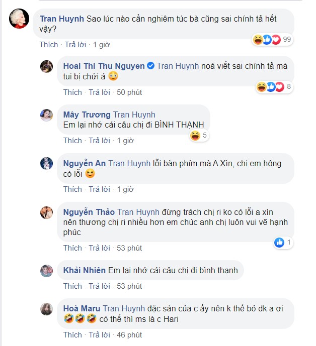 Chứng kiến cuộc khẩu chiến trên trang cá nhân của Hari Won, Trấn Thành cũng đã phải ra mặt bình luận với giọng điệu khá hằn học: “Sao lúc nào cần nghiêm túc bà cũng sai chính tả hết vậy?”