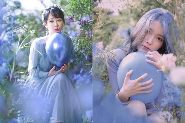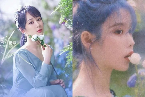 Trước đó, để quảng bá cho album “Love Poem” của mình, IU đã chụp một bộ ảnh với concept nàng thơ bên cạnh hoa và bong bóng. Thậm chí, ngay cả màu sắc trang phục hay cách tạo dáng với hoa và bong bóng của của Dương Tử cũng không khác biệt lắm so với IU.