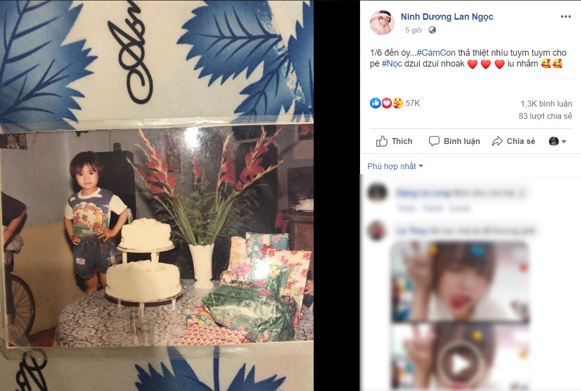 Nhân dịp ngày Quốc tế Thiếu nhi 1/6, mới đây Ninh Dương Lan Ngọc đã đăng tải một bức ảnh thời còn bé của mình. Bức hình thời nhỏ đáng yêu này của Ninh Dương Lan Ngọc đã nhanh chóng thu hút được sự chú ý của đông đảo người hâm mộ.