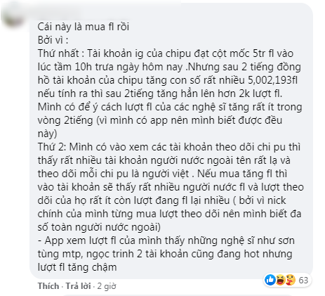 Bên cạnh đó, lượng tương tác trong bài đăng của Chi Pu cũng cho thấy sự không tương xứng với con số 5 triệu lượt follow.