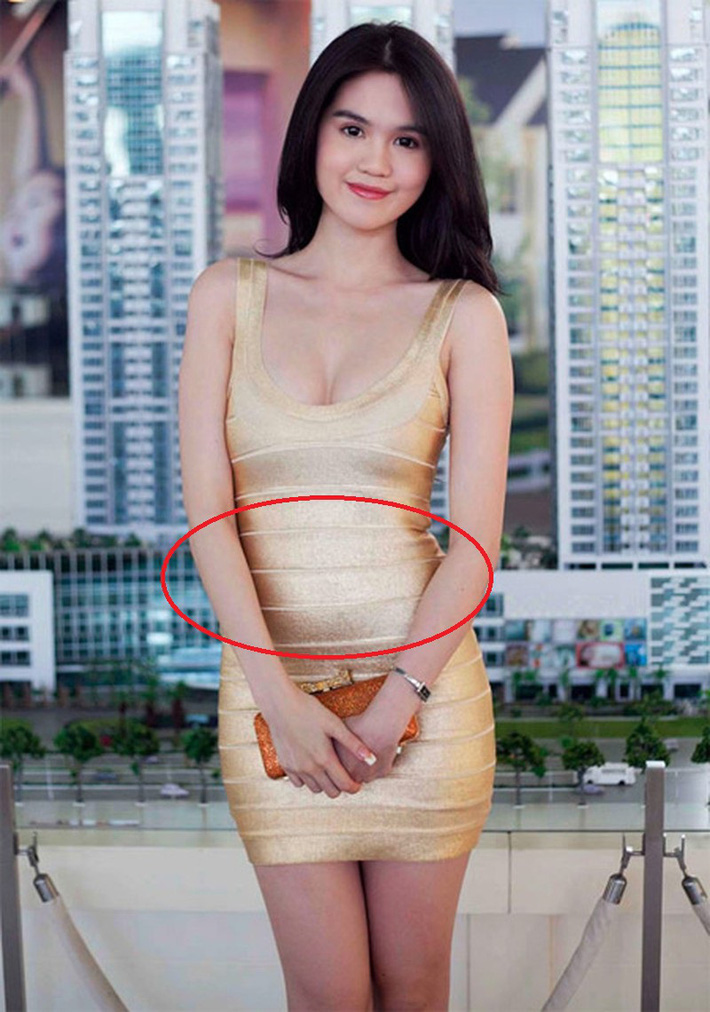 Nhưng thực tế, Ngọc Trinh lại nhiều lần vô tình để lộ bộ phận xấu xí nhất trên cơ thể. Cụ thể, khi mặc những bộ đồ ôm sát tưởng đâu khoe trọn body, nào ngờ vùng bụng dưới “ngấn mỡ” của “nữ hoàng nội y” là lồ lộ ra ngoài. Dù có vòng eo siêu nhỏ, vòng 3 căng tròn hút mắt những góc máy chính diện, Ngọc Trinh vẫn để lộ phần bụng dưới tròn đầy.