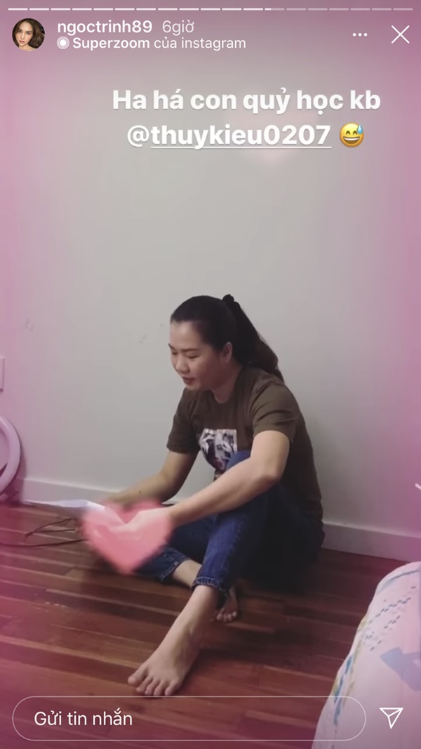 Không những vậy, trợ lý Ngọc Trinh còn hạnh phúc bật mí mức cát-xê đầu tiên khi đi diễn. Theo đó, Thúy Kiều đã được trả 5 triệu đồng sau khi hoàn thành công việc. "Nữ hoàng nội y" cũng tỏ ra rất vui vẻ, cô lập tức chia sẻ lại story của trợ lý lên Instagram hơn 5 triệu follow của mình để khoe. Chỉ với một chi tiết nhỏ thế này cũng chứng minh Ngọc Trinh đang rất tự hào và ủng hộ công việc mới của Thuý Kiều.