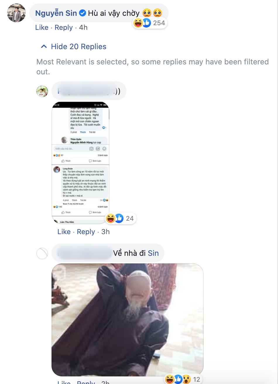Đặc biệt, giữa vô vàn bình luận phản bác Hương Giang, “hiệp sĩ đường phố” Nguyễn Sin cũng không đứng ngoài, thậm chí anh còn có phần mỉa mai nàng hậu: “Hù ai vậy trời”, như chứng minh mình không tin cô nàng cho lắm.
