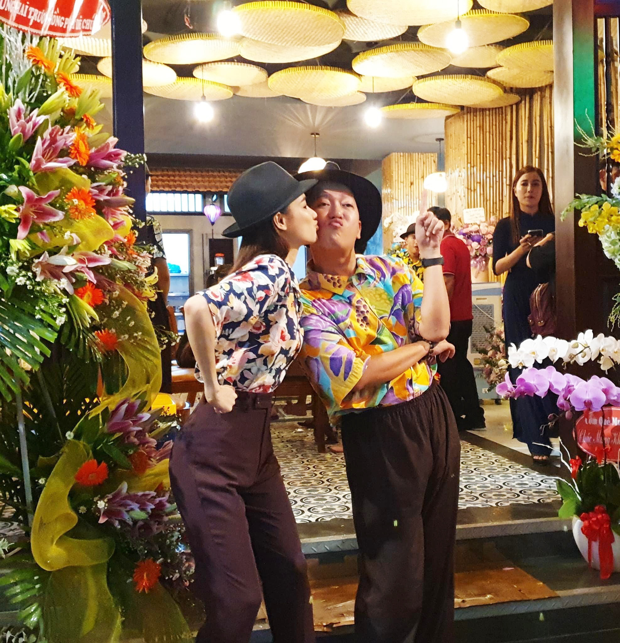 “Đây nè, Phương mặc đồ của chồng, mặc ké vì không nghĩ mình có thời gian để kịp về dự khai trương quán nhà mình nên chẳng chuẩn bị đồ. Cuối cùng là quyết định mặc đồ của chồng” – Nhã Phương cho biết.