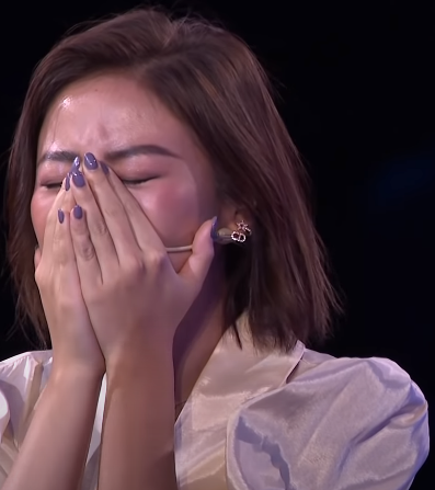 Đối mặt với đồng đội trên sân khấu, Văn Mai Hương bỗng òa khóc vì cảm thấy bản thân không may mắn, làm ảnh hưởng đến tiền thưởng của cả hai.