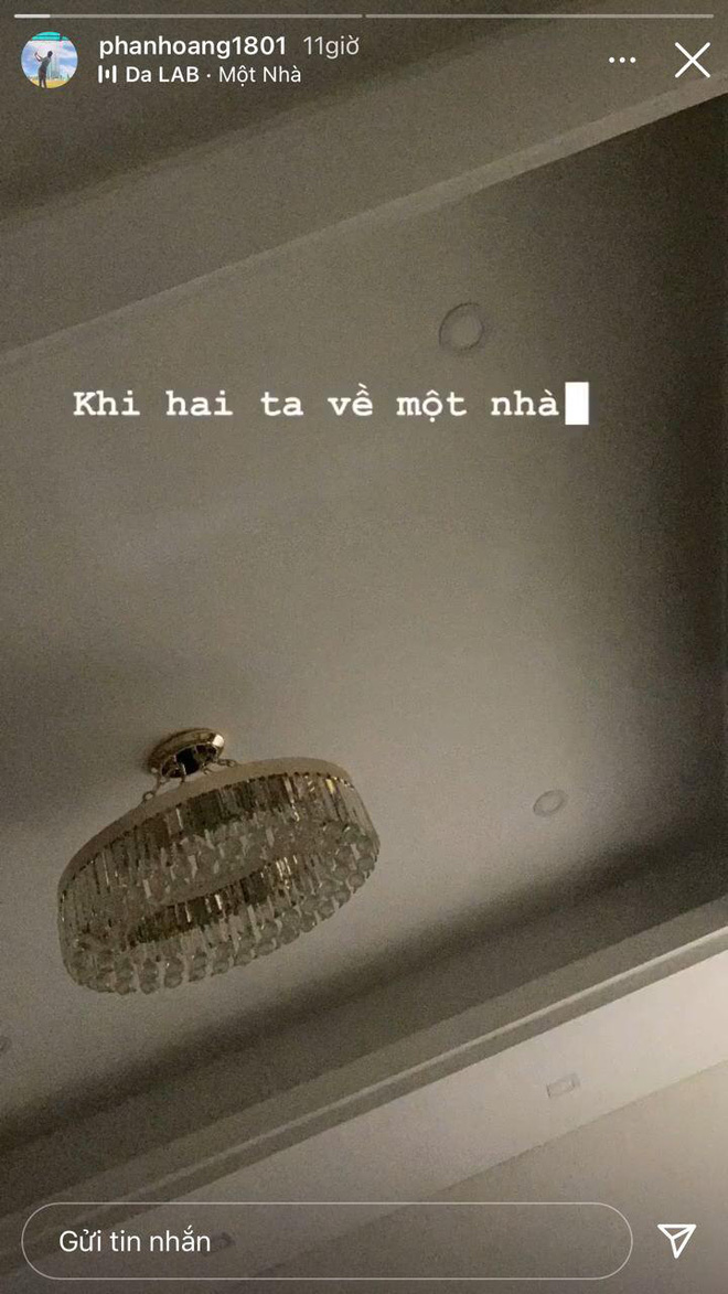 Về phần mình, thiếu gia Phan Hoàng cũng liên tục up story đầy ẩn ý. Cụ thể em trai Phan Thành đăng bài hát Một Nhà của Da LAB và đi ra khỏi nhà từ sáng sớm - trùng hợp với thông tin mà dân tình đang bàn tán.