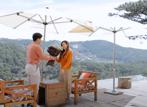 Đặc biệt, khoảnh khắc carh ai cùng nhau ngồi máng trượt khiến fan phát sốt. Cả hai ngồi sát bên nhau và có nhiều khoảnh khắc tình cảm. Chi Dân như một anh bạn trai ga lăng, quan tâm che nắng cho nữ diễn viên khiến trái tim người xem tan chảy.
