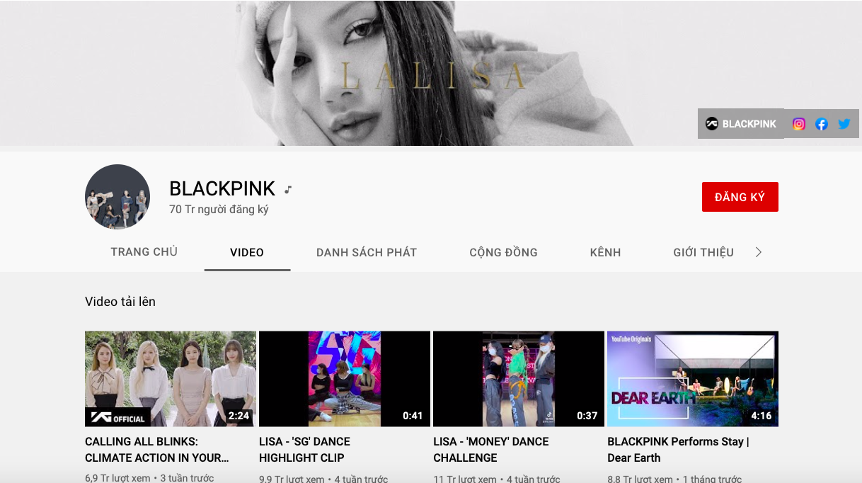 YG Entertainment mới đây thông báo kênh Youtube chính thức của BlackPink đã cán mốc 70 triệu lượt đăng kí. Với con số ấn tượng này, Black Pink tiếp tục giữ vững vị thế của nghệ sĩ sở hữu kênh Youtube có số lượng đăng kí cao nhất thế giới. Trước đó vào tháng 9/2021, Black Pink vượt Justin Bieber để xác lập kỉ lục thế giới về khoản lượt đăng kí trên Youtube.
