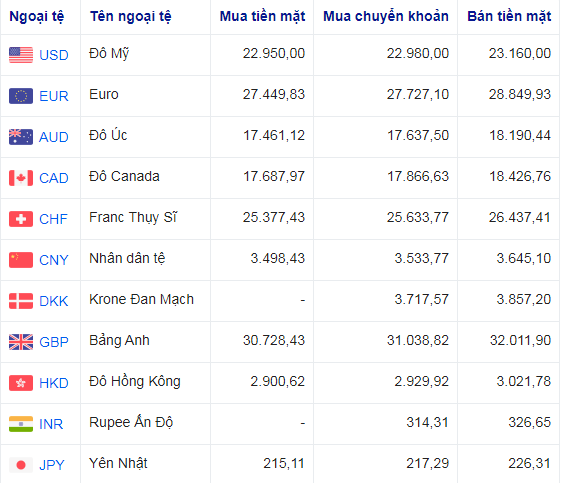 Giá mua USD tại các ngân hàng nằm trong khoảng từ 22.932 – 22.980 VND/USD, còn khoảng bán ra ở mức 23.160 – 23.170 VND/USD.