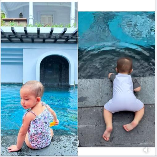 Hồ Ngọc Hà vui vẻ chia sẻ: “Bắt đầu nghịch nước. Ba má tắt thở vì đuối sức theo hai anh chị”. Ngay lập tức, hình ảnh của cặp song sinh nhận được nhiều sự khen ngợi và thích thú từ cư dân mạng.