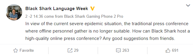 CEO Black Shark, ông Lou Yuzhou cho biết Xiaomi có thể sẽ phải thay đổi sự kiện ra mắt Mi 10 và Black Shark 3, nhiều khả năng sẽ chỉ ra mắt thông qua sự kiện trực tuyến chứ không thể tổ chức sự kiện trực tiếp như hàng năm.