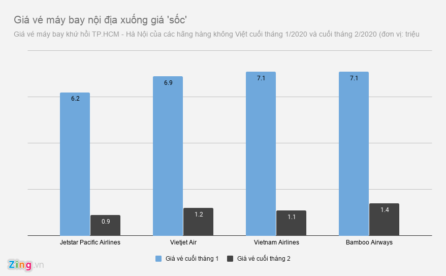 Biểu đồ so sánh giá vé máy bay nội địa của tháng 1 và tháng 2