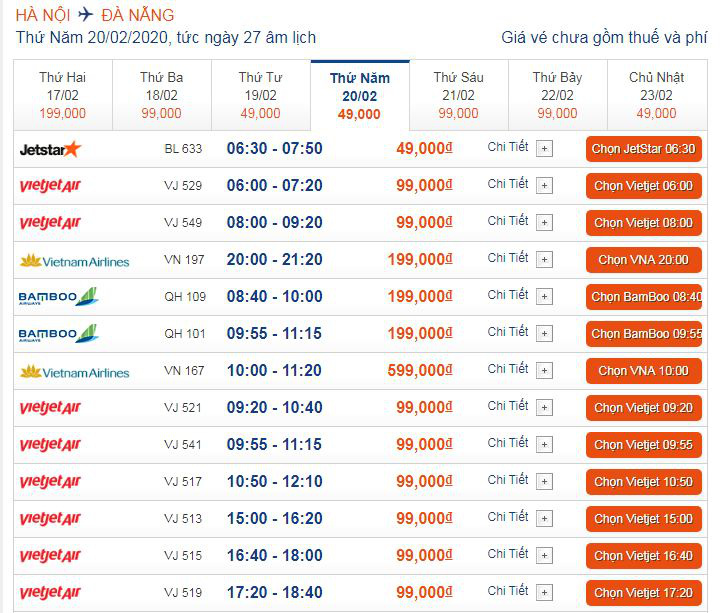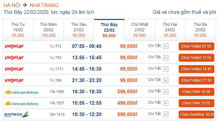 Ngoài ra các chuyến bay đến Nha Trang - Đà Nẵng cũng được hạ giá "kịch sàn", nhiều chặng chỉ có 49.000 hay 99.000 đồng nhằm kích cầu khách hàng.