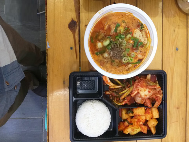 "Nơi chúng tôi đặt mua các suất cơm cho đoàn khách đến từ Daegu (Hàn Quốc) là từ 1 nhà hàng món Hàn nổi tiếng nhất Đà Nẵng. Tất cả khách Hàn Quốc đến Đà Nẵng luôn chọn nhà hàng đó để ăn. Mỗi phần ăn 200 nghìn đồng gồm cơm, canh hầm xương heo, thịt heo cay, mì súp cua" - Bác sĩ Phúc chia sẻ.