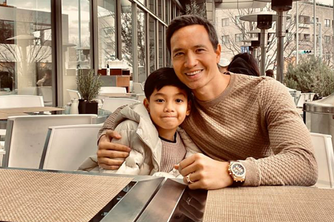 Cụ thể, hai cha con Subeo – Kim Lý đang cùng theo dõi một chương trình nào đó thông qua điện thoại trong khuôn viên hồ bơi. Kim Lý thể hiện sự thoải mái bên cạnh Subeo, khoác vai đầy tình cảm. Con trai Hà Hồ cũng dựa vào vai bố dượng, đặc biệt còn có khoảnh khắc cậu thơm má Kim Lý.