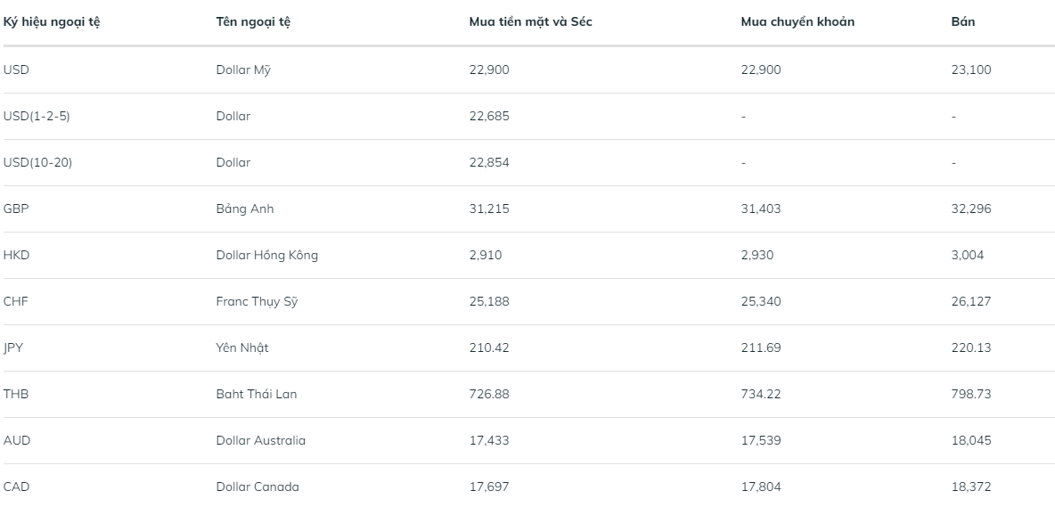 Tỷ giá USD/VND ở một số ngân hàng phổ biến ở quanh mức: 22.840 đồng/USD và 23.100 đồng/USD.
