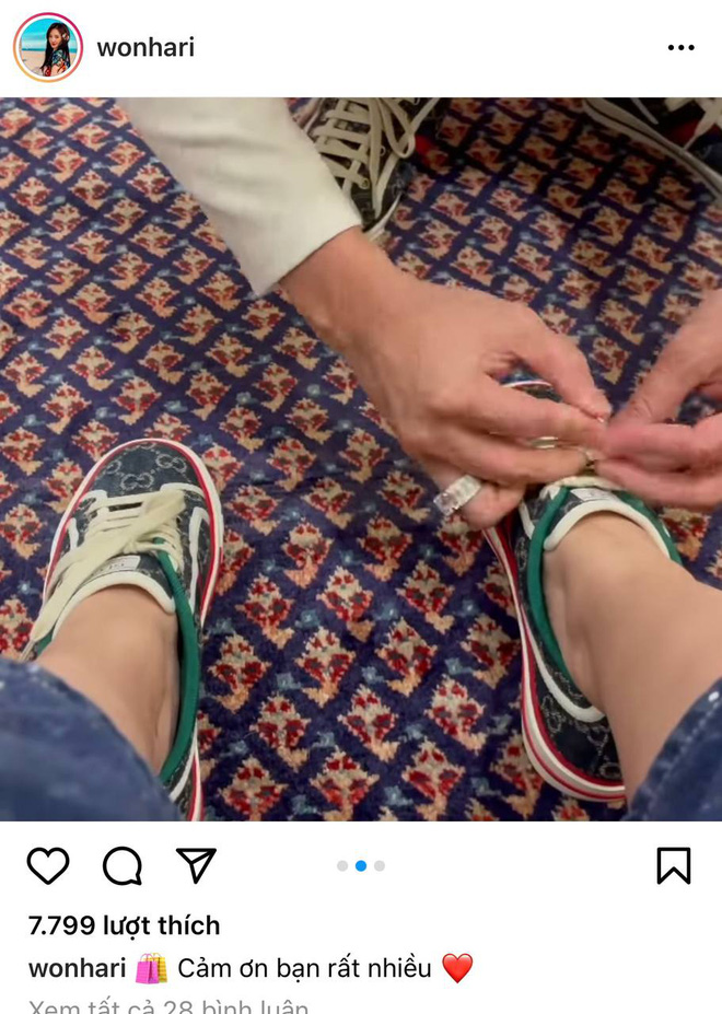 Sau bao phen than vãn vì vắng chồng, tối ngày 31/1, Hari Won khiến netizen phải trầm trồ ghen tị khi tung loạt ảnh được chồng tự tay buộc dây giày, còn mua loạt đồ hiệu cho cô. Được Trấn Thành “đền bù” sau khoảng thời gian phải tự chuyển nhà và ngóng chồng về hàng đêm, Hari Won không giấu được sự hạnh phúc.