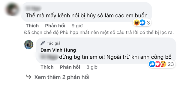 Tuy nhiên, bên dưới bài đăng, CĐM lại liên tục hỏi về tin đồn nam ca sĩ bị hủy show ở Mỹ vì vướng hàng tá ồn ào trrong thời gian qua. Lập tức, nam ca sĩ đáp trả thẳng: “Đừng bao giờ tin em ơi. Ngoại trừ khi anh công bố".