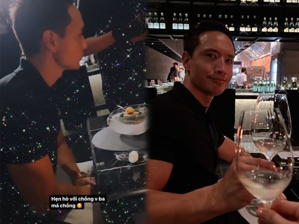Cặp đôi diện đồ "ton sur ton" tận hưởng mọi khoảnh khắc lãng mạn bên nhau trong một nhà hàng sang trọng và xa hoa. Cả hai còn vui vẻ gặp gỡ và trò chuyện cùng những người bạn thân thiết trong ngành của mình. Có thể nói từ khi có sự xuất hiện của 2 nhóc tì Lisa - Leon, đây là những hình ảnh hiếm hoi vợ chồng Hà Hồ có thể lên đồ lộng lẫy, thoát khỏi dáng vẻ bận bịu.