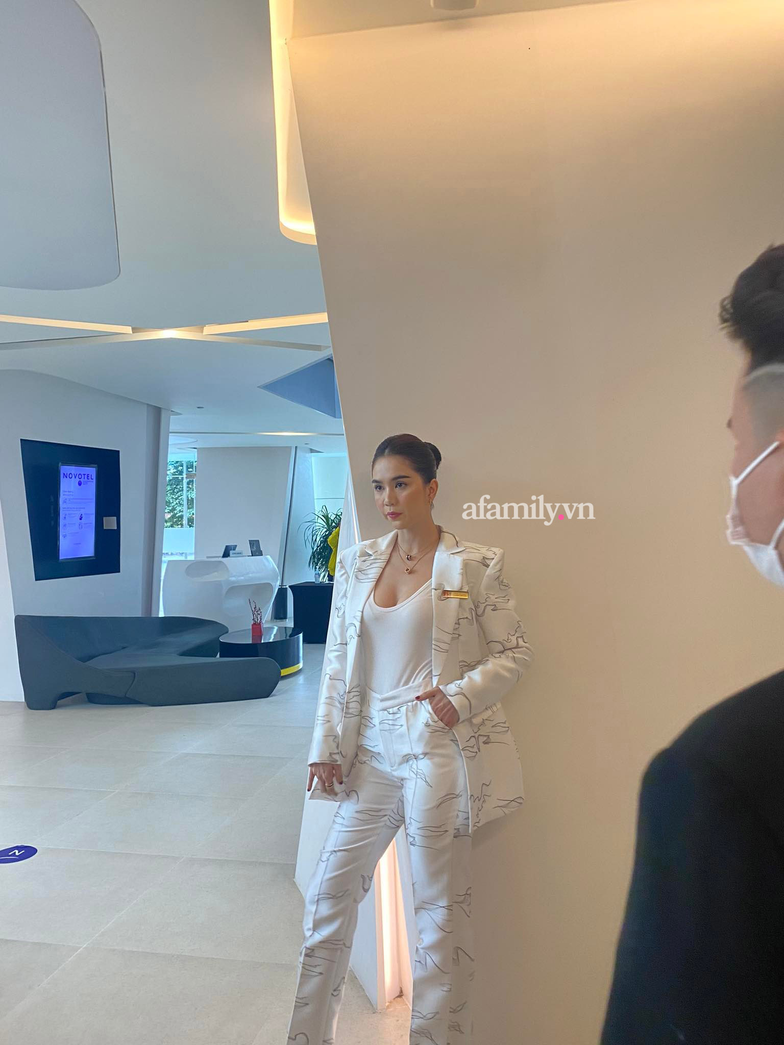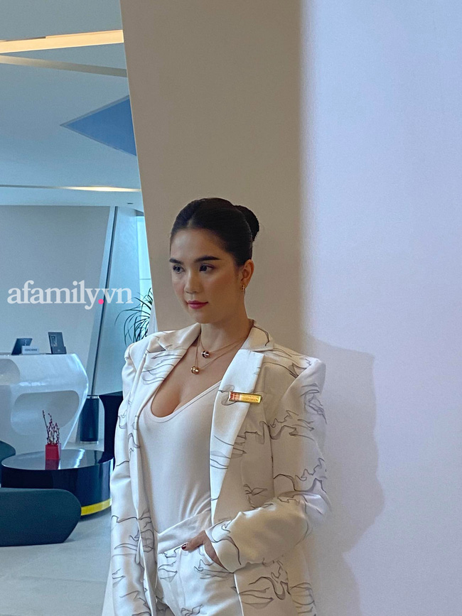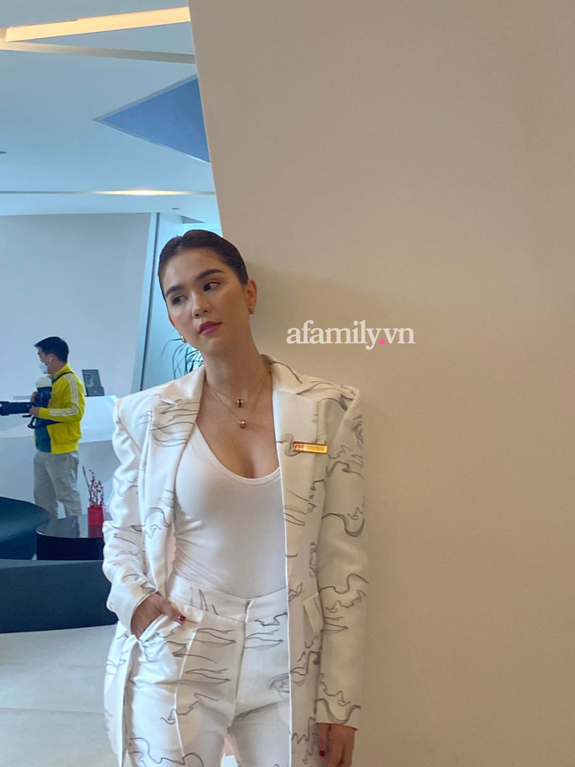 Lần tái xuất này, Ngọc Trinh được nhận xét là có phần kín đáo hơn khi diện một bộ vest trắng đúng chuẩn “tổng tài”, nhưng vẫn không thể thiếu màn khoe vòng 1 nảy nở của mình thông qua một chiếc áo phông cổ trễ.