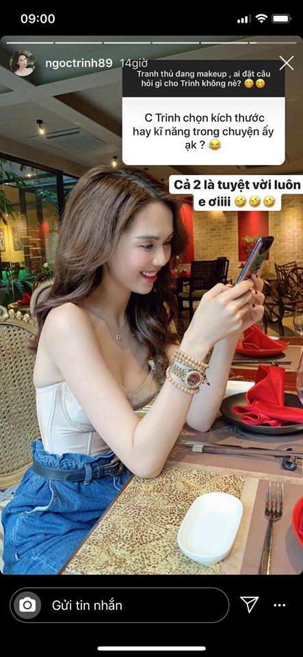 Bên cạnh đó, khi được hỏi về chuyện chăn gối khi được chọn giữa kích thước và kĩ năng, người đẹp hào hứng chia sẻ có cả hai là điều tuyệt vời nhất.