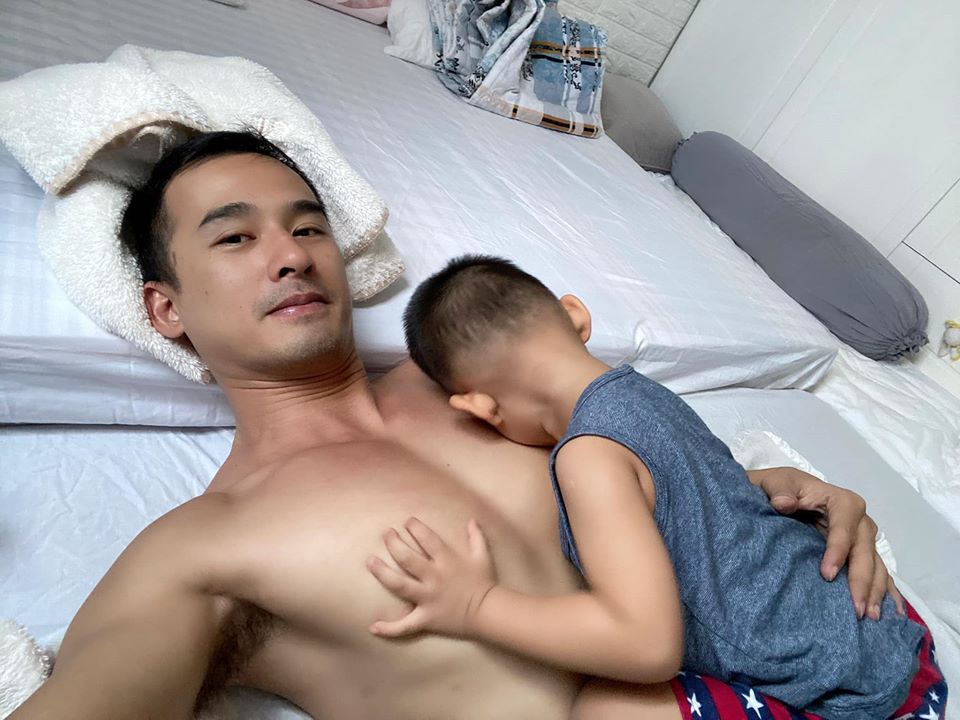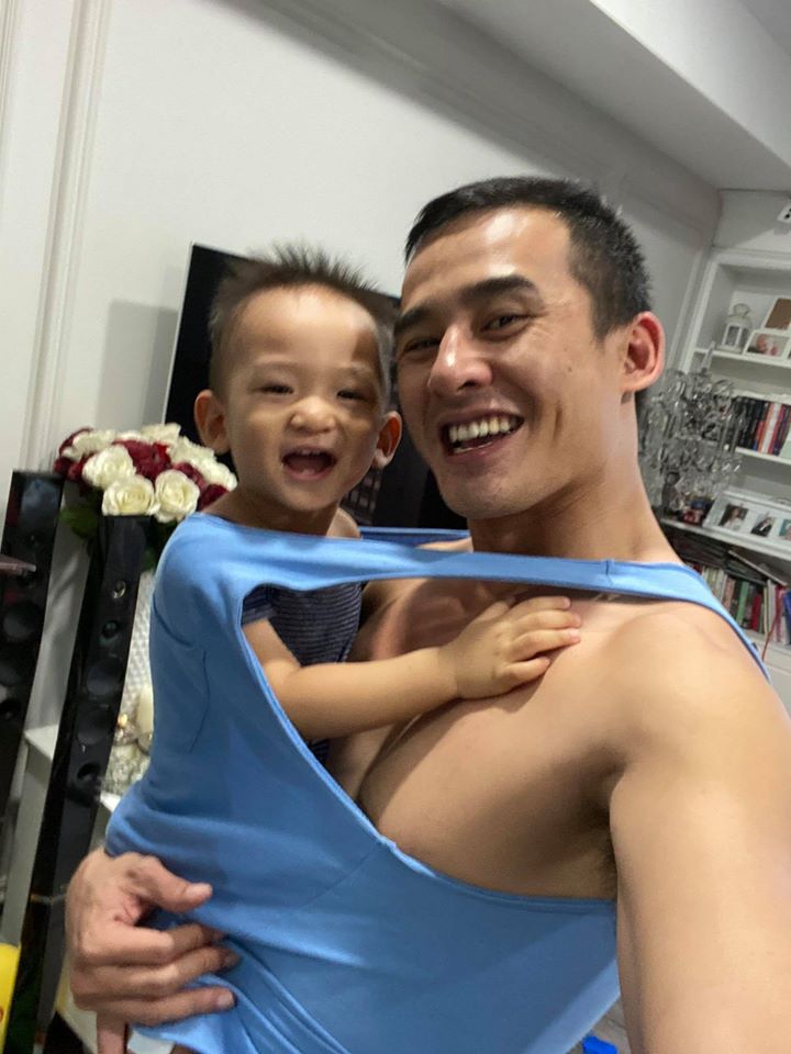Lương Thế Thành chăm sóc con trai rất tốt khi vợ vắng nhà.