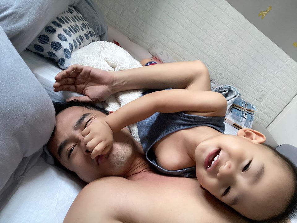 CĐM cũng một phen bật cười khi thấy những hình ảnh mà Lương Thế Thành đăng tải, con trai Bảo Bảo của anh thản nhiên “hành hạ” thể xác bố. Tuy kêu than là mệt mỏi rã rời nhưng biểu cảm của nam diễn viên điển trai lại vô cùng sung sướng, mãn nguyện, lúc nào cũng trông tươi rói và đầy rạng rỡ.