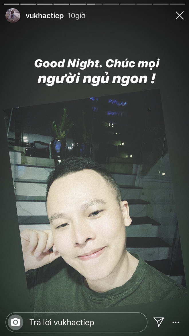 Nhưng theo diễn biến khác, thì Instagram của Vũ Khắc Tiệp lại nhộn nhịp hơn hẳn. Ngay từ khi được trở về nhà, ông bầu Ngọc Trinh đã nhanh chóng lăn vào bếp nấu ăn, rồi tối đến còn chúc ngủ ngon mọi người thật tình cảm.