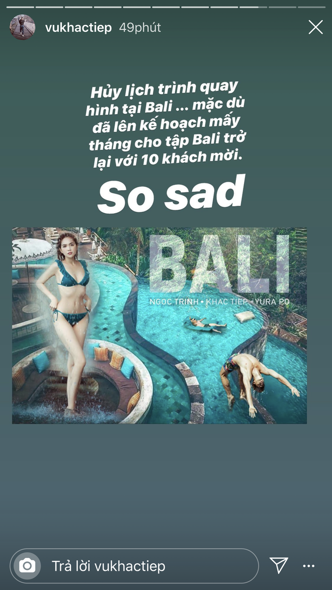 Dù đang trong thời gian phải tự cách ly, Khắc Tiệp vẫn rất mong ngóng ngày đi du lịch. Anh liên tục up lại ảnh đi du lịch vừa qua, đồng thời tiết lộ rằng phải hủy kế hoạch đi Bali quay vlog, đây là tập sẽ có số lượng khách mời khủng lên tới 10 người.