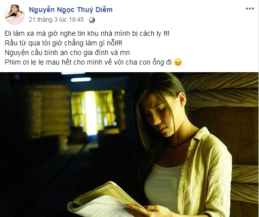 Cụ thể, vợ của người tình Mỹ Tâm – Thúy Diễm hiện đang đi đóng phim xa nhà và không thể đoàn tụ với gia đình. Mới đây, nữ diễn viên còn thể hiện sự lo lắng khi biết khu nhà ở bị cách ly trong đó có cả ông xã và con. Dù lòng “nóng như lửa đốt”, Thúy Diễm cũng không thể về nhà vì công việc vẫn đang còn dang dở.