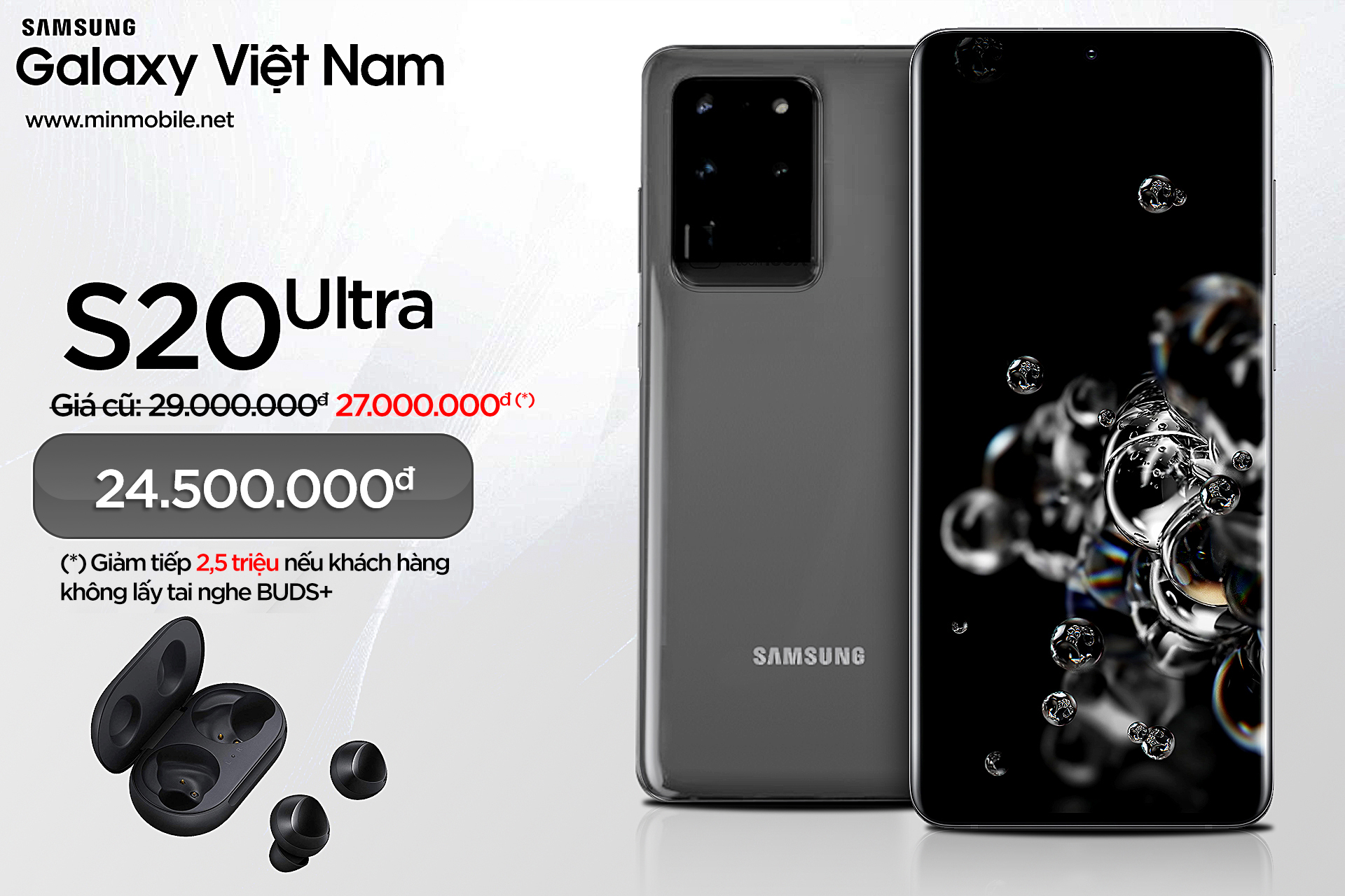 Khi mua kèm phụ kiện, Samsung Galaxy S20 còn được giảm sâu tiếp.