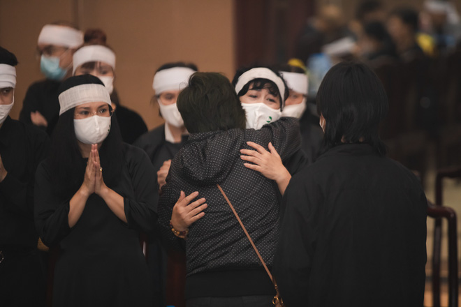 Trong suốt buổi cử hành tang lễ, hình ảnh NSND Minh Hằng mắt ngấn nước, cố gắng gượng để hoàn thành tang lễ cho chồng khiến nhiều người thương cảm. Mặc dù đã cố nén nỗi đau nhưng trong thời gian diễn ra tang lễ, NSND Minh Hằng nhiều lần bật khóc.