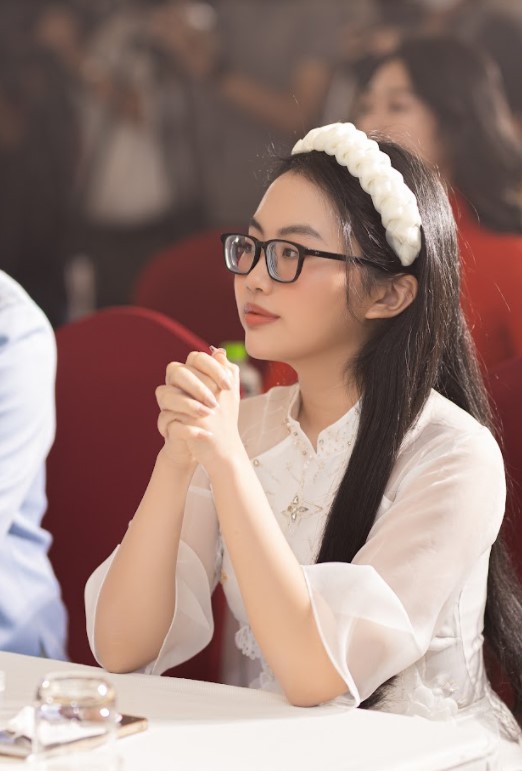 Trong sự kiện, ai nấy đều phải trầm trồ trước nét đẹp trưởng thành, duyên dáng và thuần khiết của Phương Mỹ Chi khi diện bộ trang phục áo dài trắng tinh khôi, với thiết kế hoa nổi kết hợp với chiếc mần cùng màu.