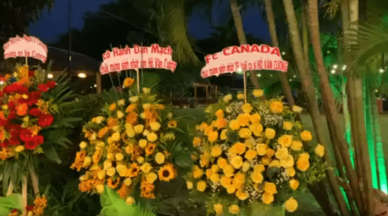 Có thể thấy, có rất đông người hâm mộ đã tề tựu tại bữa tiệc, không gian tổ chức sinh nhật vô cùng sang trọng nhưng vẫn có sự ấm cúng. Đáng chú ý, có rất nhiều lẵng hoa được gửi tặng từ FC nước ngoài. Có thể thấy, dù vướng phải ồn ào thời gian qua, Hồ Văn Cường vẫn được yêu mến.