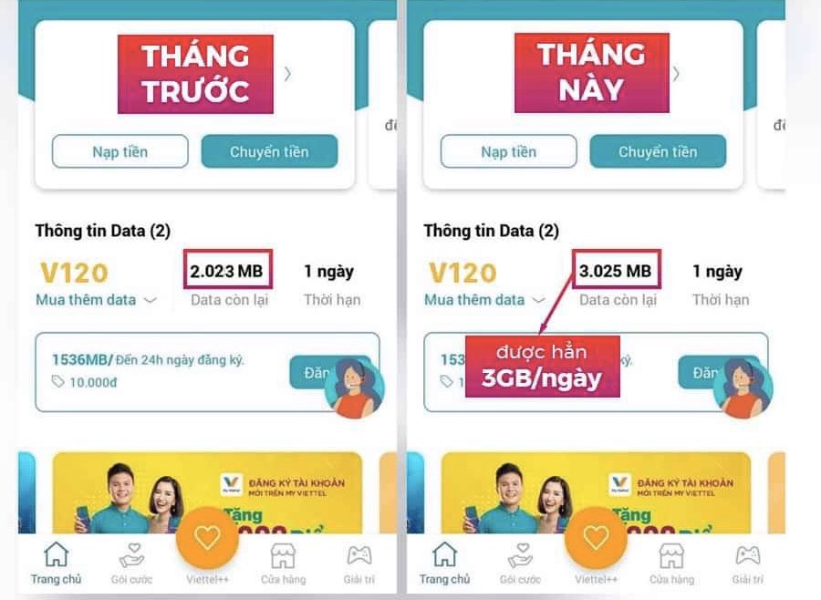 Theo những thông tin trước đó, Viettel sẽ triển khai gói ưu đãi khủng khi đăng ký một số gói cước vào tháng 4 sẽ được tặng thêm 50% dung lượng 3G/4G miễn phí, thỏa thích dùng cả tháng mà không lo hết data.