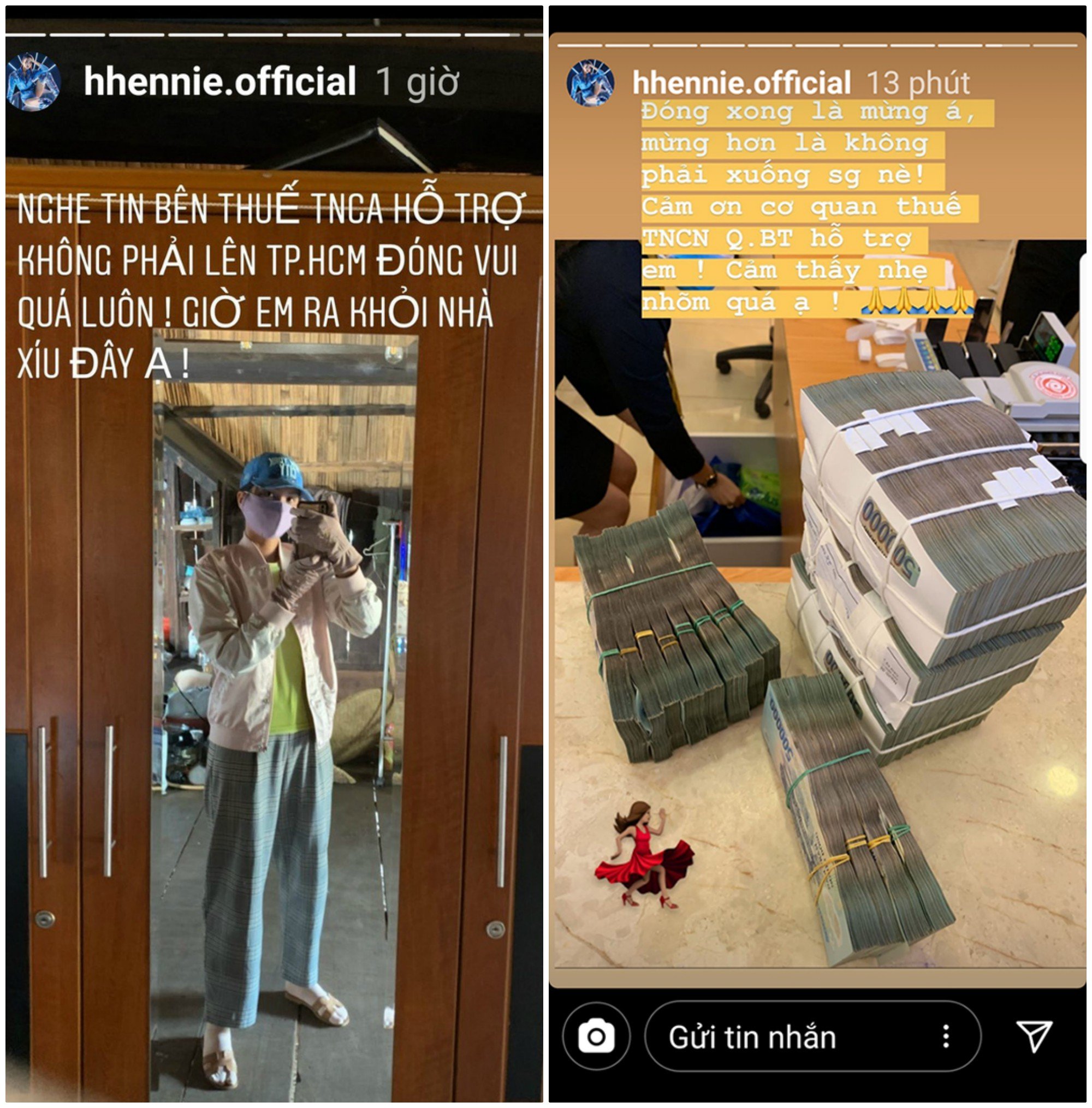 Mới đây, H’Hen Niê đã công khai hình ảnh đi nộp thuế cá nhân tại quê nhà Đắk Lắk. Cô vui mừng chia sẻ: “Đóng xong là mừng á, mừng hơn là không phải xuống Sài Gòn nè. Cảm ơn cơ quan thuế đã hỗ trợ em, cảm thấy nhẹ nhõm quá ạ!”. Dù hình ảnh chồng tiền đi đóng thuế được người đẹp gỡ ngay sau đó, nhiều CĐM đã soi được số tiền mà H’Hen Niê đóng. Ước tính, nàng hậu đã đóng thuế cá nhân khoảng hơn 2 tỷ đồng.