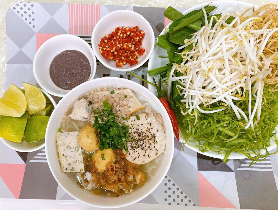 Vơ Hoài Lâm bán bún kiếm thêm thu nhập.