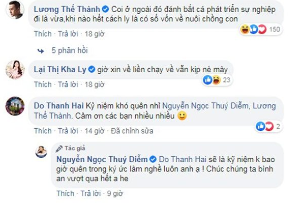Được biết, nơi vợ “người tình Mỹ Tâm” đóng phim tại Bình Thuận, tỉnh thành này đang ghi nhận nhiều ca mắc Covid-19, nên khi đoàn phim đóng máy, Thúy Diễm sẽ phải đi cách ly 14 ngày để đảm bảo sức khỏe. Thấy vợ rầu rĩ, Lương Thế Thành đã bình luận an ủi vợ và dí dỏm đùa rằng trong thời gian cách ly phát triển sự nghiệp…bắt cá để về nuôi chồng con.