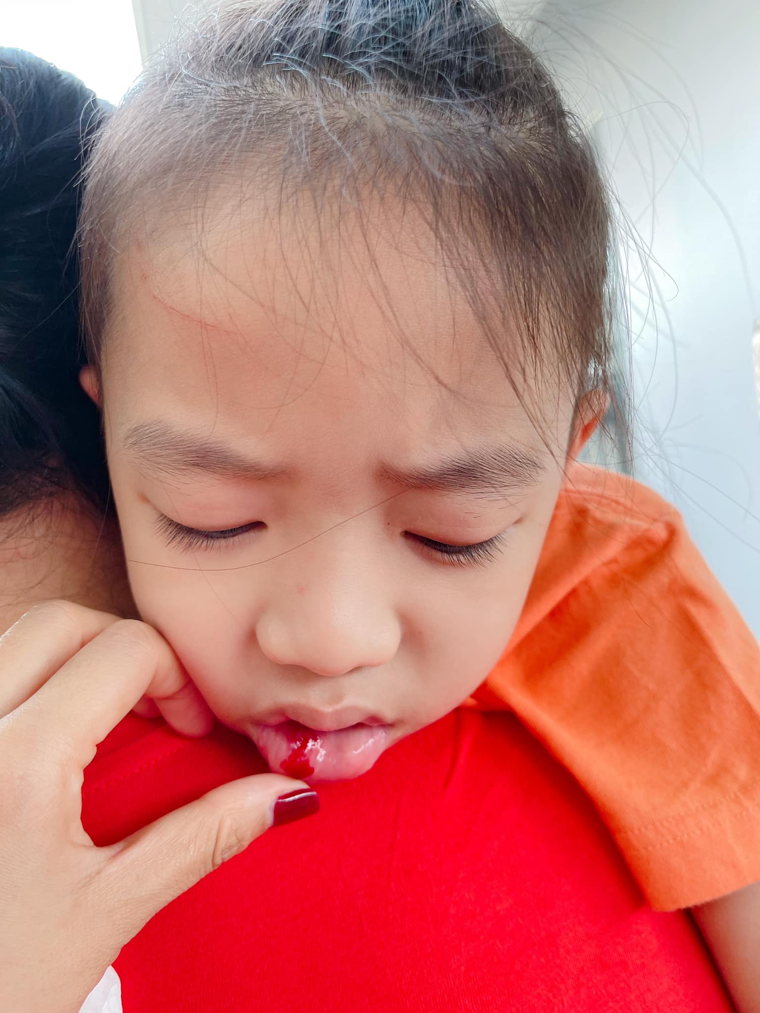 “Con nít thường đứa nào cũng bị dập mỏ 1 lần trong đời..e cũng từng nghịch dại đập mặt chảy máu mỏ..sưng chà bá luôn”