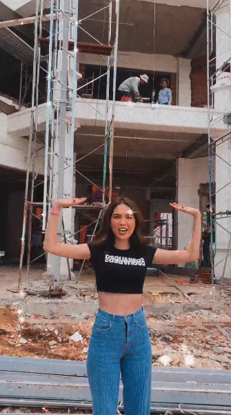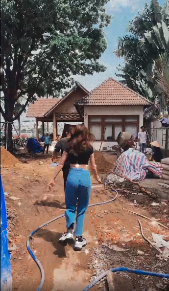 Ngay khi vừa đến nơi, “nữ hoàng nội y” đã zoom cận cảnh sự bề thế của căn biệt thự. Dù mới đang quá trình xây dựng, nhưng ai cũng có thể thấy sự rộng lớn và sẽ vô cùng sang trọng nêu tòa lâu đài này được xây dựng lên.