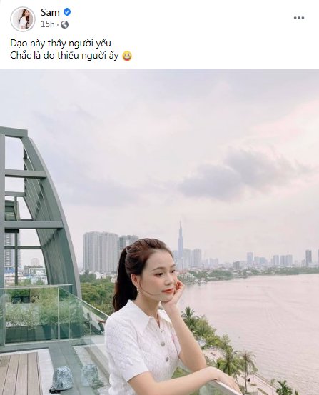 Cách đây ít giờ, Sam bất ngờ đăng tải hình ảnh xinh đẹp của mình lên trang cá nhân. Điều đặc biệt, nữ diễn viên còn bày tỏ trạng thái nhớ nhung người ấy khiến CĐM xôn xao: “Dạo này thấy người yếu, chắc là do thiếu người ấy”.