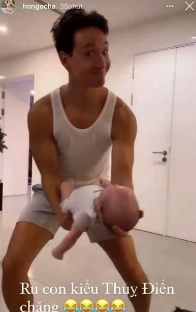 CĐM cũng bật cười khi Kim Lý liên tục có những cách chăm con “không giống ai”. Có lần phút giây Kim Lý vừa ôm chặt con trên tay vừa nhún nhảy vui vẻ thu hút sự chú ý. Hành động của Kim Lý khiến Hà Hồ chỉ biết nói: "Tớ rất là nhức đầu nhé". Một lần khác anh lại trổ tài bế con kiểu Thụy Điển khiến Hà Hồ bất ngờ. Trước đó, Hồ Ngọc Hà khó có thể cảm được cách ru con, chơi cùng con của Kim Lý. Nam diễn viên luôn có những cách ru con khá "khác người" như lúc thì cho con "chơi tàu lượn" trên tay mình, vừa hát vừa nhảy khi bế con,...