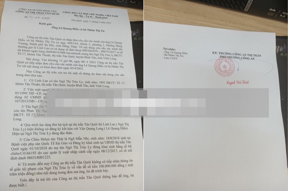 Qua đó, gia đình Vân Quang Long cũng liên hệ với cơ quan chức năng để xác minh lại nhân thân của Linh Lan, khẳng định vợ hiện tại của NS Vân Quang Long là người phụ nữ khác, hiện đang sinh sống ở Mỹ.