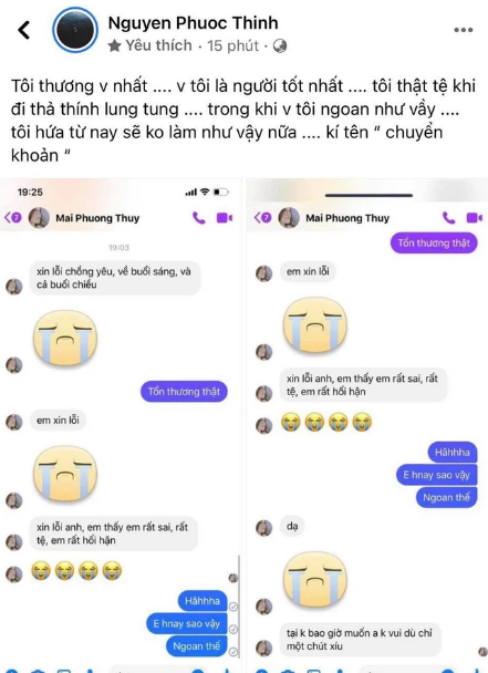 Đáng chú ý là cách đây không lâu, Mai Phương Thúy còn khiến cộng đồng mạng được dịp ghen tị khi gửi tin nhắn cực ngọt ngào cho Noo Phước Thịnh. Cả hai không chỉ xưng hô đầy ngọt ngào là "vợ - chồng yêu" mà còn khẳng định không muốn làm nhau buồn dù chỉ một chút.