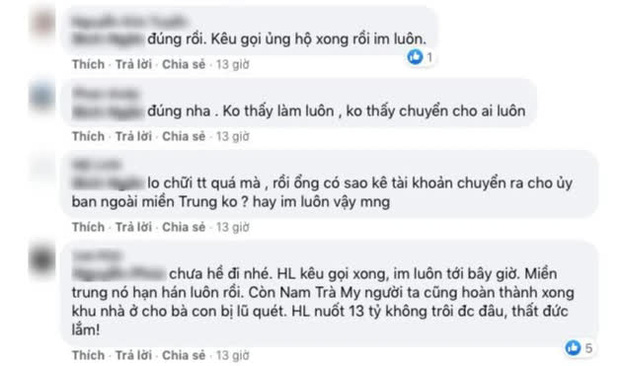 Không thấy ai quan tâm hơn 13 tỷ đồng miền Trung như thế nào à? Thấy chú kêu gọi nhưng chưa trao cho miền Trung.