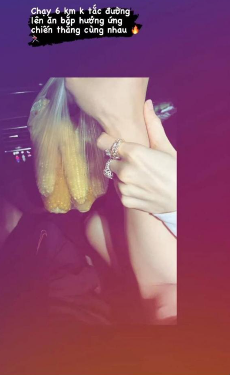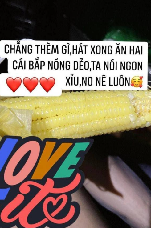 Cách đây ít giờ, Lệ Quyên bất ngờ khoe cách chăm sóc chu đáo của Lâm Bảo Châu. Qua đó, nam người mẫu chuẩn bị đồ ăn cho bạn gái sau khi đi hát về. Dù món ăn có phần đơn giản nhưng vẫn khiến nữ ca sĩ xúc động bày tỏ: “Chẳng thèm gì, hát xong ăn hai trái bắp nóng dẻo, ta nói nó ngon xỉu, no nê luôn".