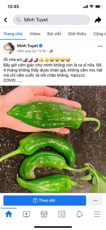 “Bây giờ cảm giác như mình không còn là ca sĩ nữa. Đã 4 tháng không thấy được khán giả, không cầm mic hát mà chỉ cầm cuốc và nồi cháo không.” – Minh Tuyết than thở.