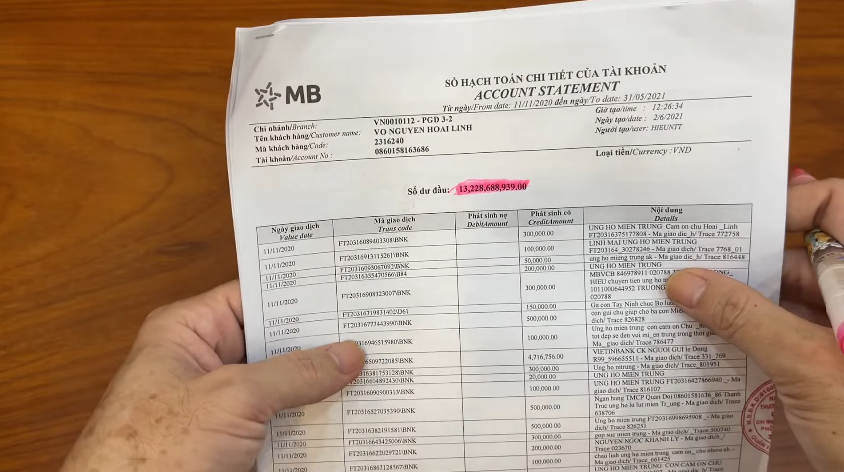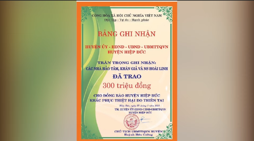Qua đó, nam danh hài cũng công khai hình ảnh về loạt sao kê chi tiết, giải thích rõ lý do các số tiền trong tài khoản rút ra với mục đích từ thiện. Hoài Linh cũng công khai hình ảnh trong chuyến từ thiện và nhiều bằng khen chứng nhận.