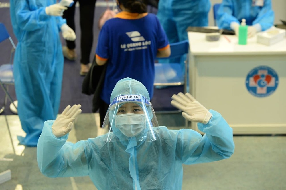 Mới đây, nàng Hậu một lần nữa tham gia công tác tình nguyện viên để hỗ trợ mà dịch với công việc phụ trách hướng dẫn khu vực người bị cao huyết áp ngồi nghĩ để ổn định khi vào chích vaccine.